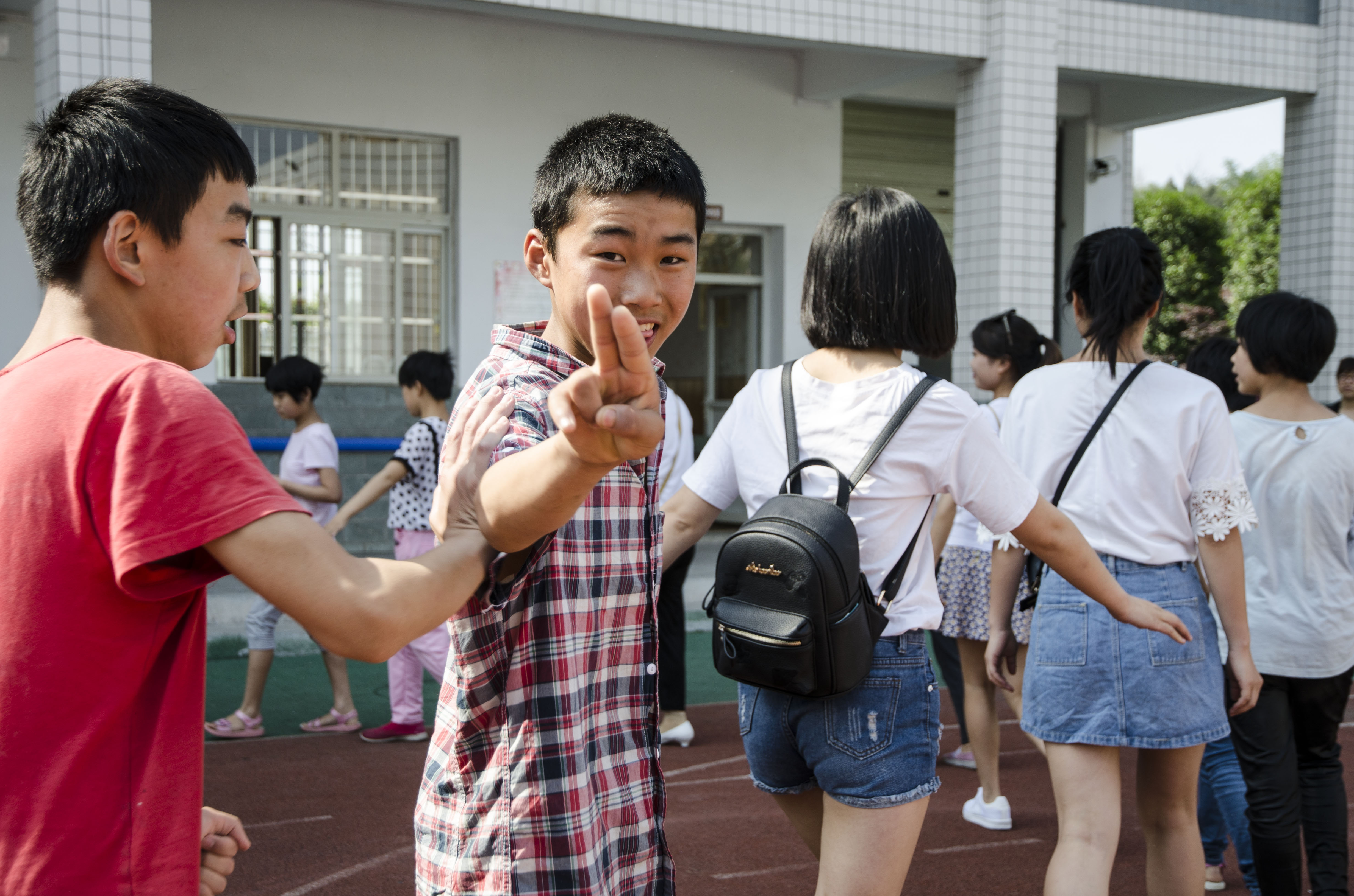上午10时许课间操开始了,学生们和公司员工们很快打成一遍,一起做游戏、一起做活动,一张张笑脸深深打动着我们每个人。让我们深深感受到了孩子们“身残志不残”的精神。