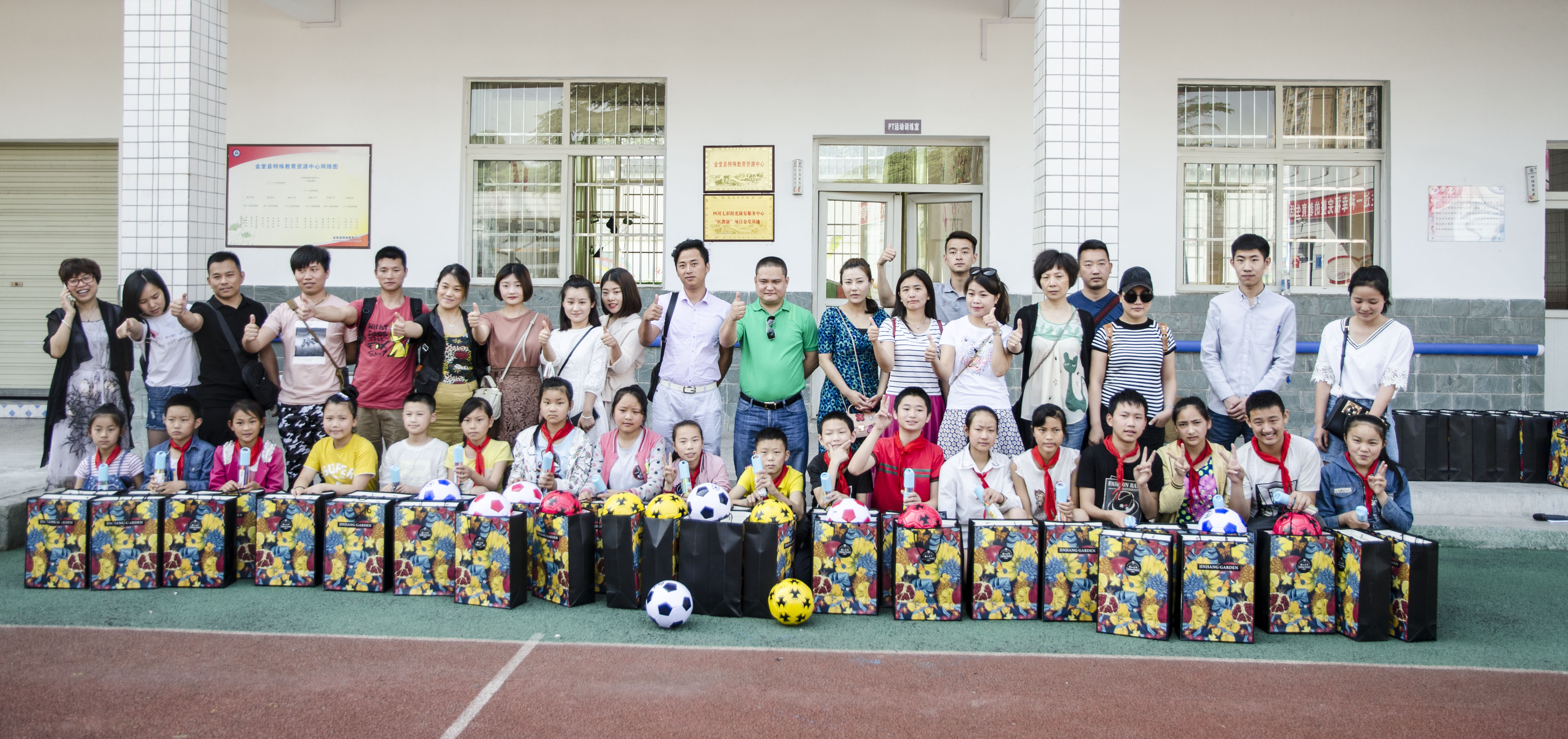 上午八时许,公司全体员工在公司楼下集合出发,带上精心准备的慰问礼品,经过一个多小时的车程,来到了本次公益活动的目的地--金堂县特教学校。金堂特教学校的学生们,既是一个特殊群体,又是一个残障的弱势群体,更需要社会的关注与扶持。
