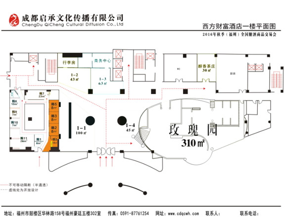 酒店一楼为大堂中心区域,面积1200余平米,酒店2-6楼总共展厅布展面积达到8000平米,能够满足各类厂家的布展需求。宽敞大气的通道非常适合酒类在此布展。